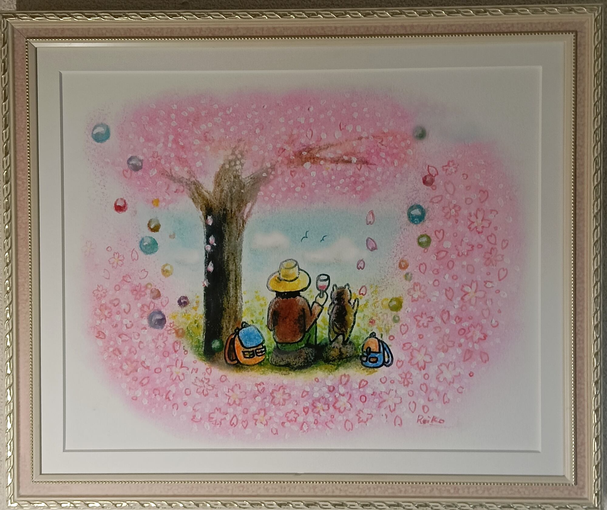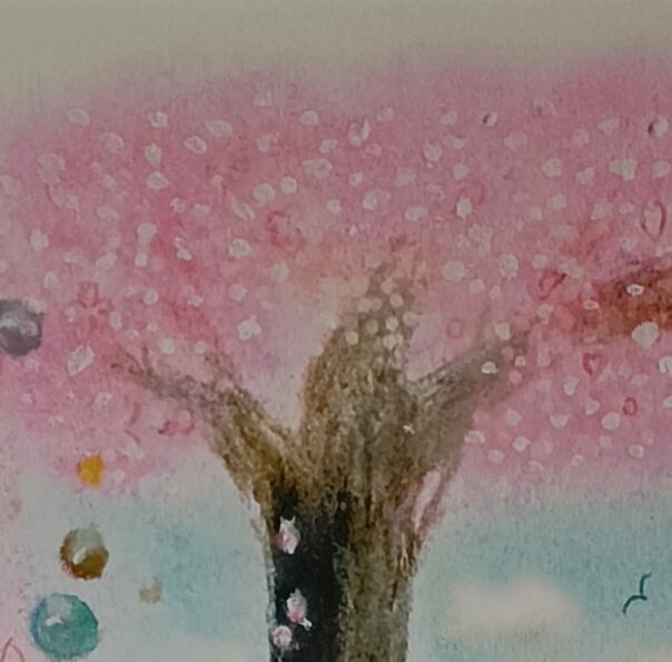 【ピンクのシャワーを浴びながら】穏やかパステル原画