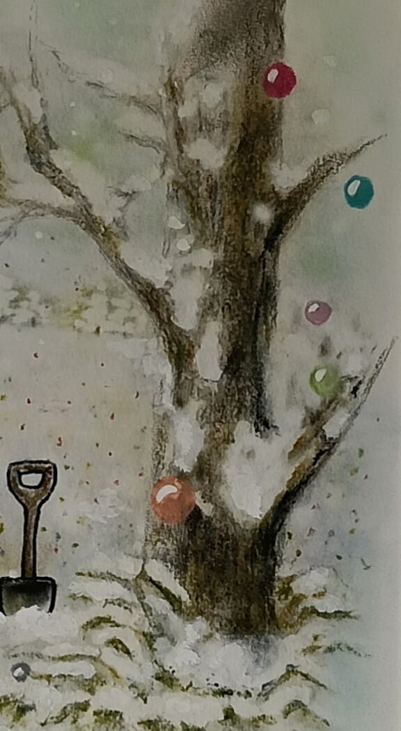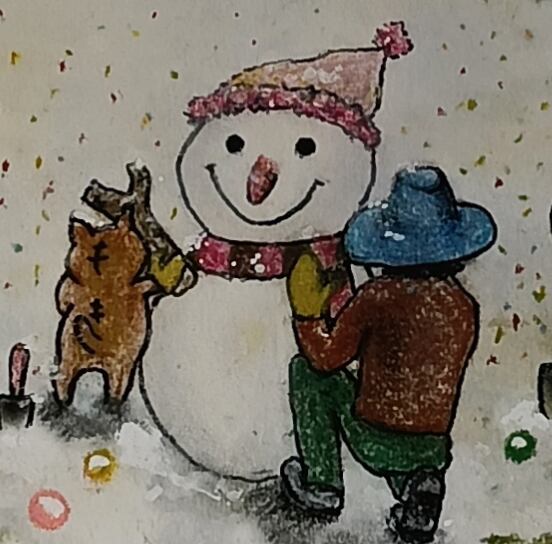 だから、もし雪が積もったなら、お揃いの黄色い手袋をはめて、一緒に雪だるまを作り、笑い合う様子を、ワクワクと想像しながら描きました。
