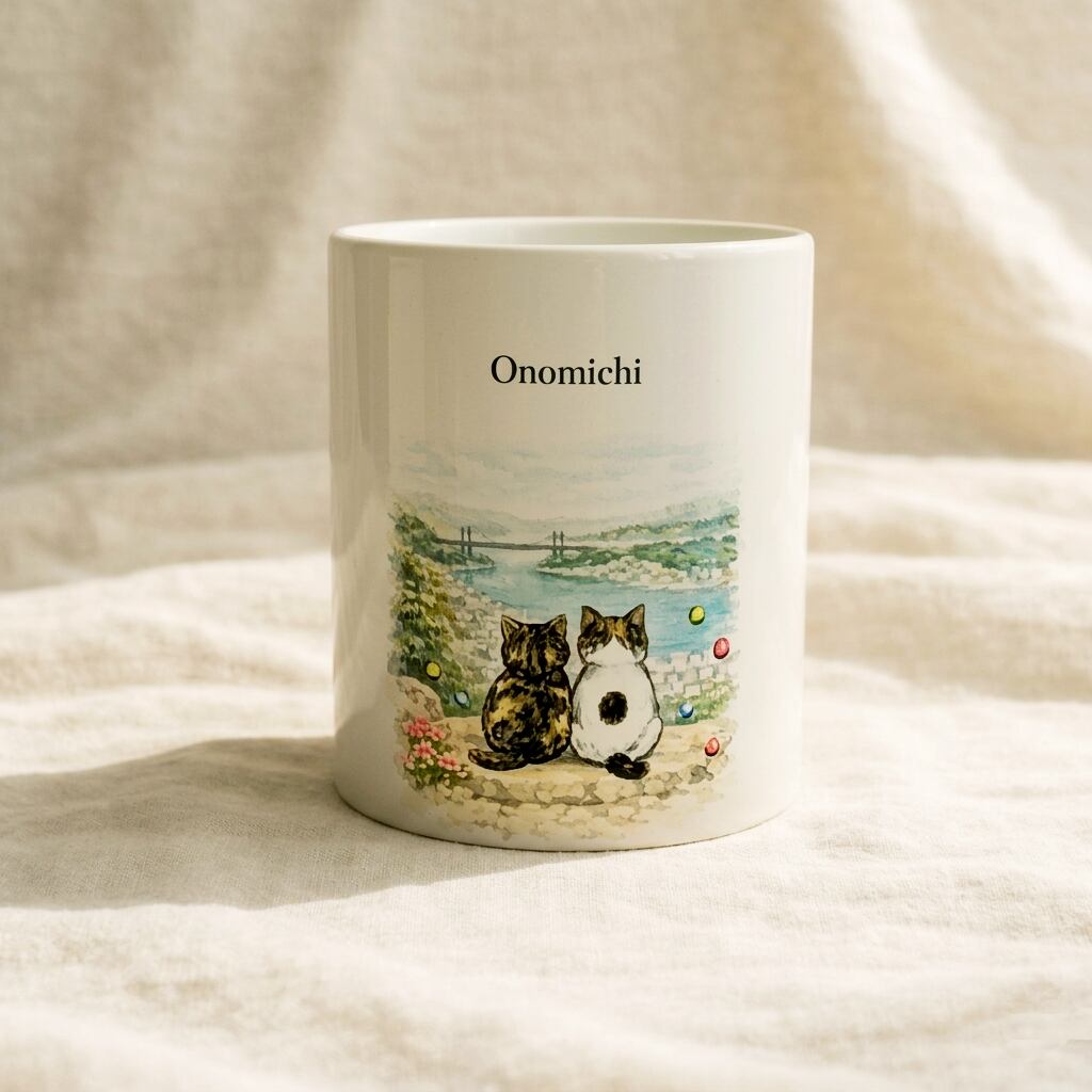 坂と猫の街、広島県・尾道の美しい風景をひとつのマグカップにぎゅっと詰め込みました。