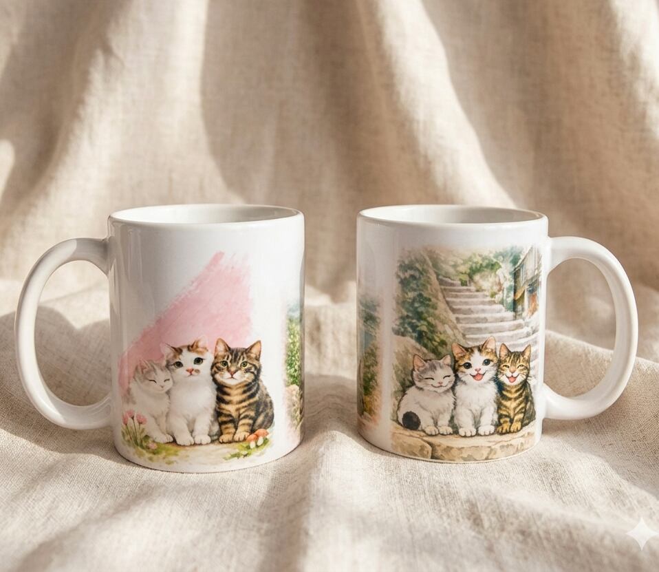 * カップを彩る2つの尾道風景&仲良し猫3匹