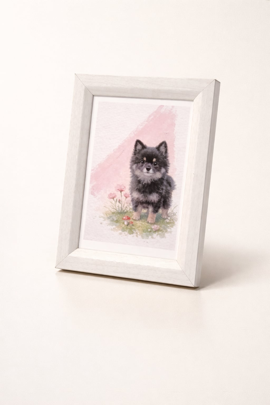 また、Tシャツは毎日着て楽しむものですが、いつか古くなっていくでしょう。でも、「うちの子」のぬくもりは永遠です。そんな思いから、そのまま飾れる「ミニ額入りパステルアート」をセットにしました。