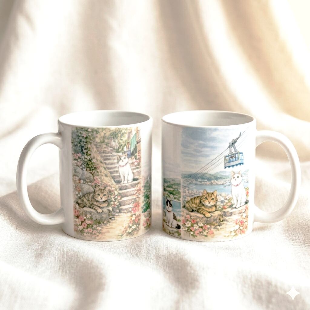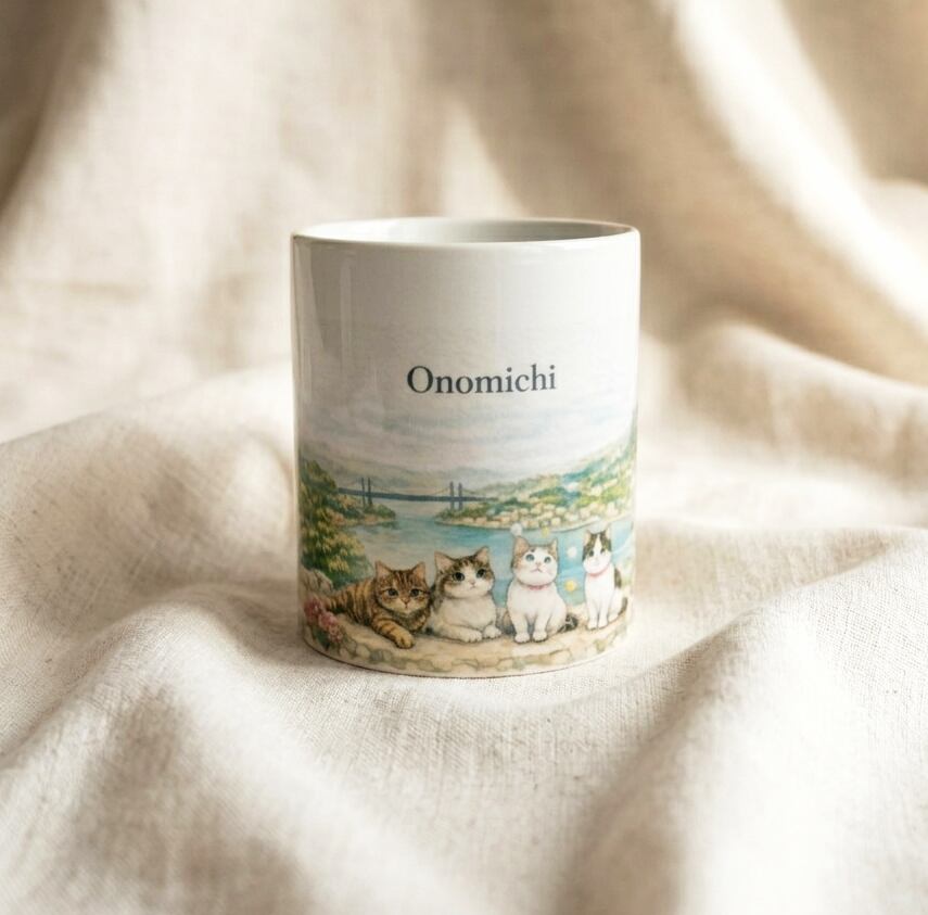 坂と猫の街、広島県・尾道の美しい風景をひとつのマグカップにぎゅっと詰め込みました。