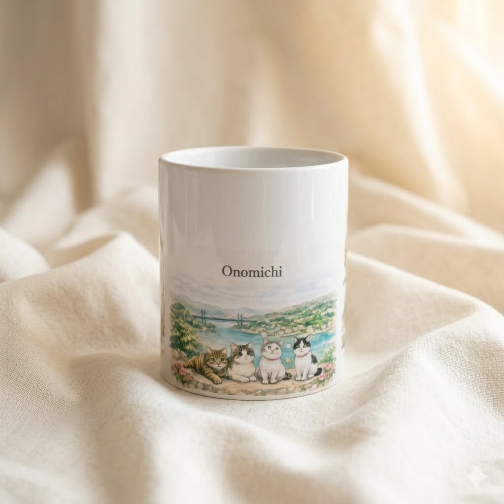 坂と猫の街、広島県・尾道の美しい風景をひとつのマグカップにぎゅっと詰め込みました。